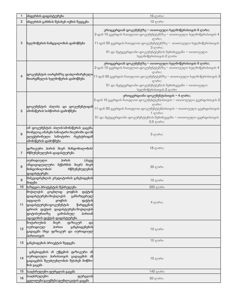 რაც შეეხება ელექტრონულ რეესტრში რეგისტრაციას, იყო 2 ლარი და გახდა 5 ლარი, ე.ი. ყველა სანოტარო აქტს დაემატება + 5 ლარი.